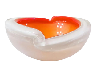 Orange & White with Gold Polveri Murano Glass Bowl by Alfredo Barbini for Camer. Apx 6 x 2.25". $295 plus s/h.
